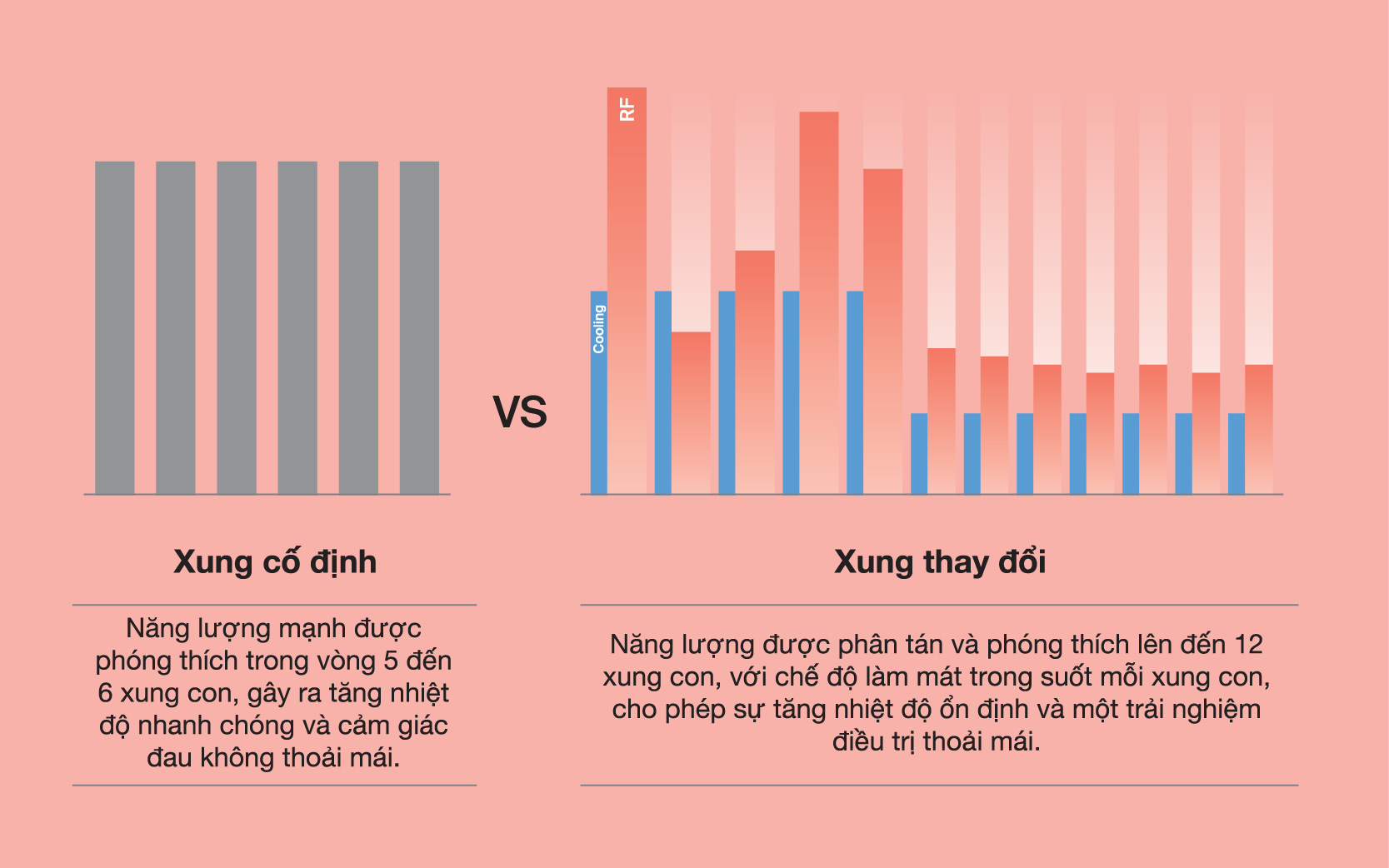 Các xung có thể thay đổi được tự động hóa. Mang lại tiến trình điều trị an toàn hơn, nhanh hơn và ít đau hơn mà không cần bôi tê.