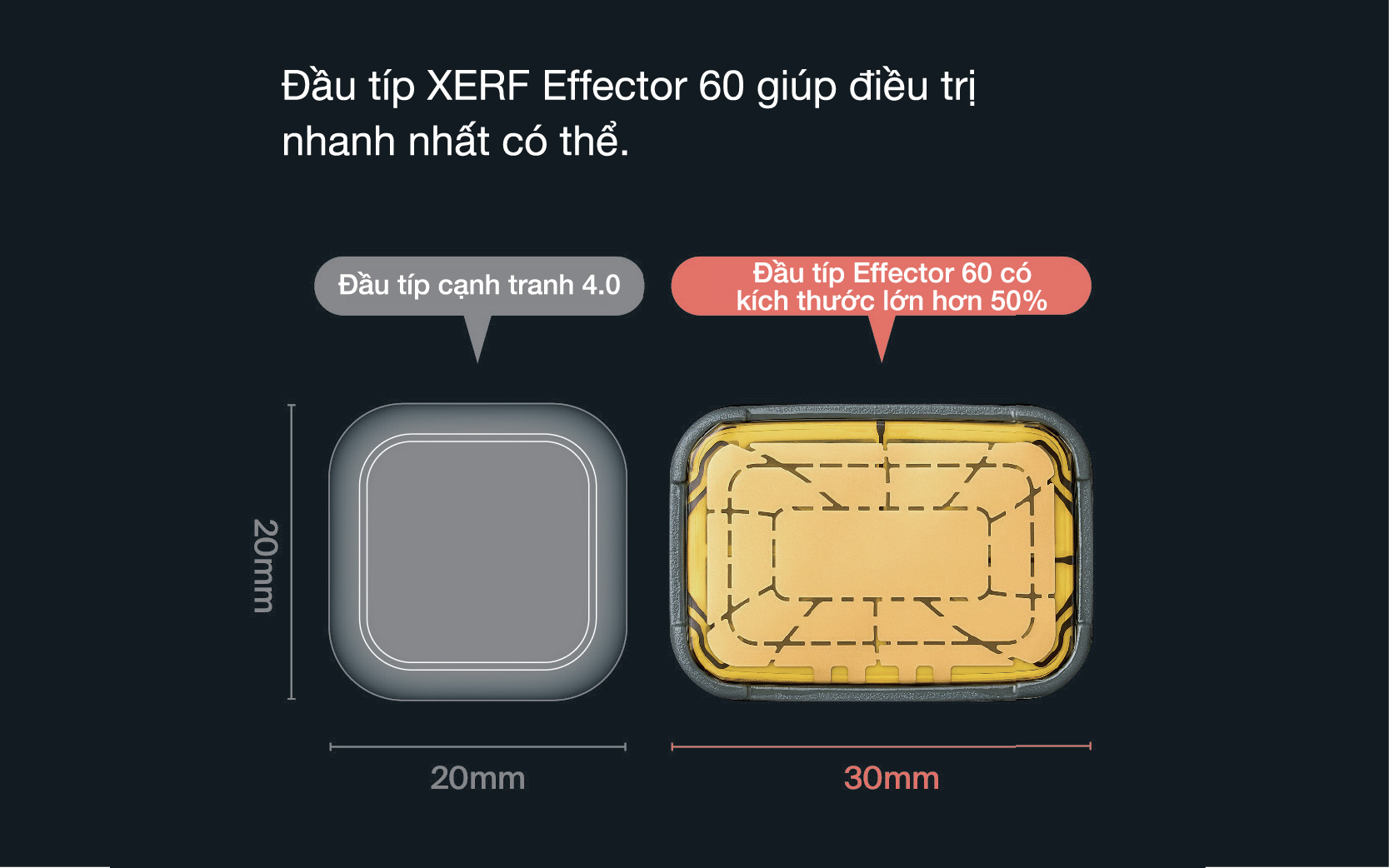 Đầu típ XERF 60 lớn 20x30mm. Phát ra lượng lớn năng lượng 1 cách nhanh chóng.